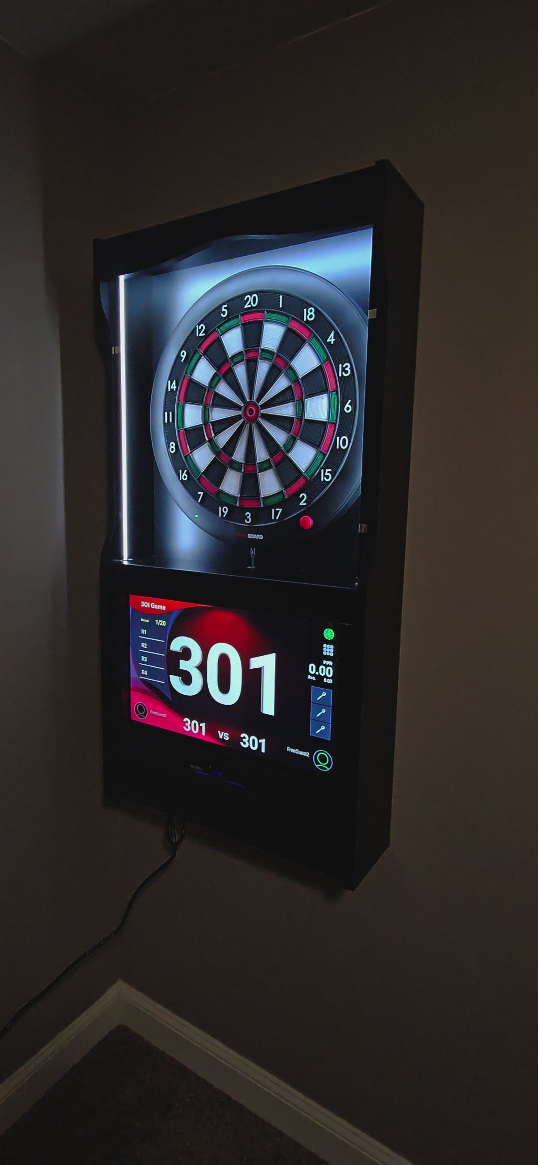 The Rebel Dart Board Cabinet is a CNC machined cabinet made to look sleek and clean in any dart room, man-cave, office, or basement.